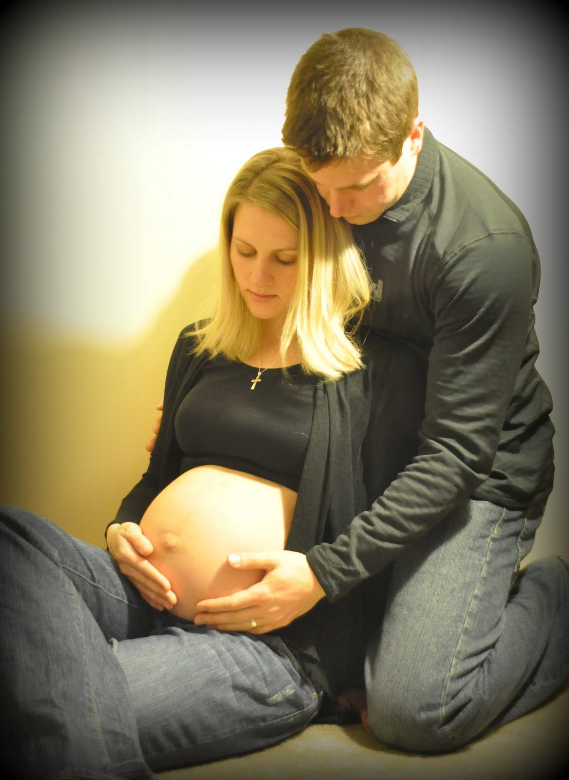 Jeff & I decided to take some fun, artistic photos today so the baby can have some pictures of when he/she was in the belly. Out came the tripod and here's what we got...